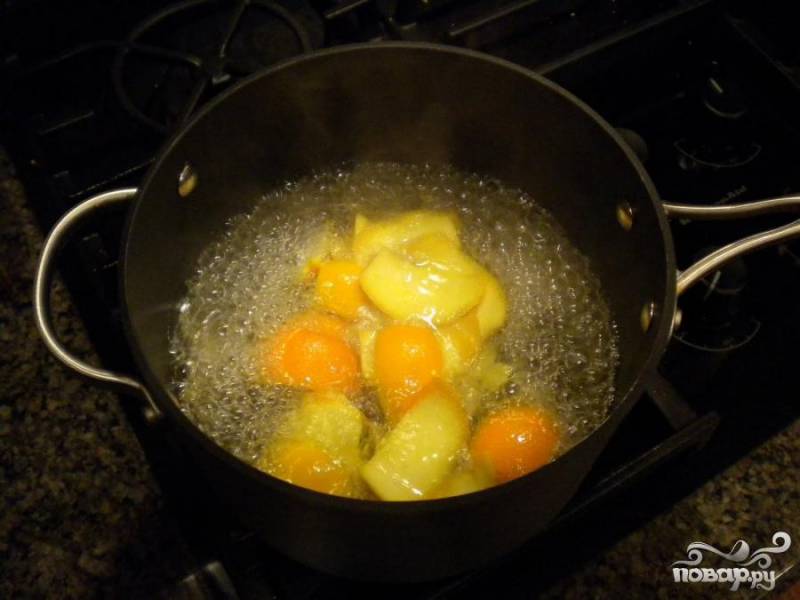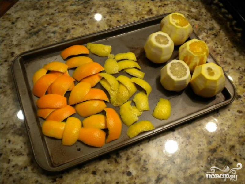 1. Разрезать фрукты на четыре части и очистить от кожуры. Кожуру не выкидывать.