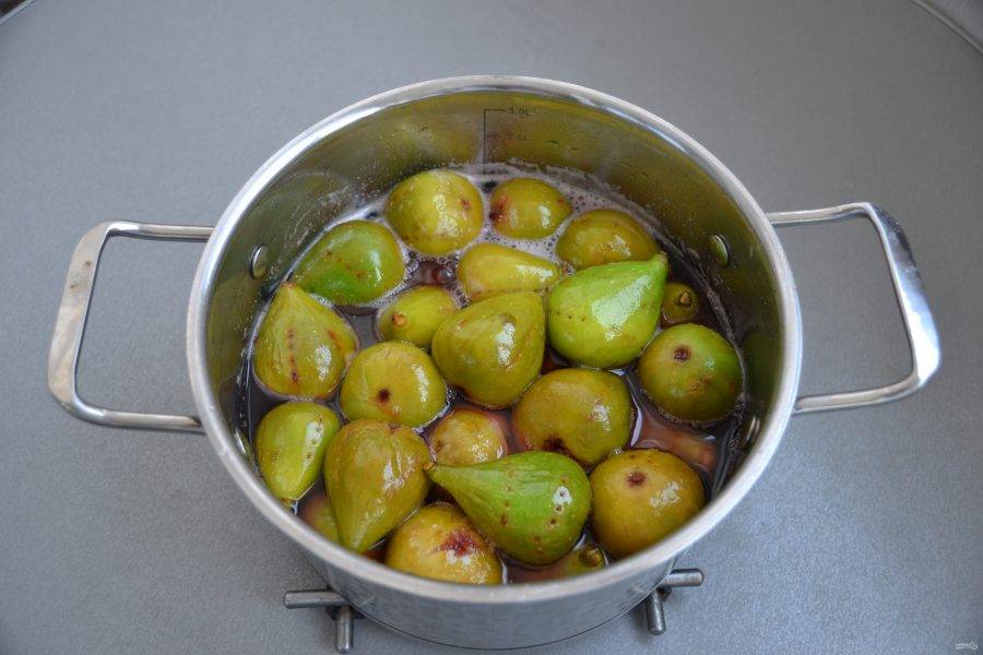 Когда инжир остынет, снова поставьте его на плиту, доведите до кипения и снова проварите 8 минут.