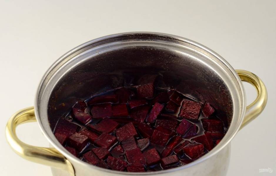 Свеклу помойте, очистите от кожуры. Нарежьте кубиками.