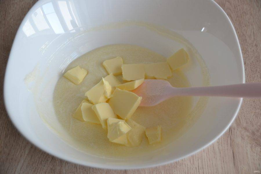 Добавьте нарезанное кусочками сливочное масло.