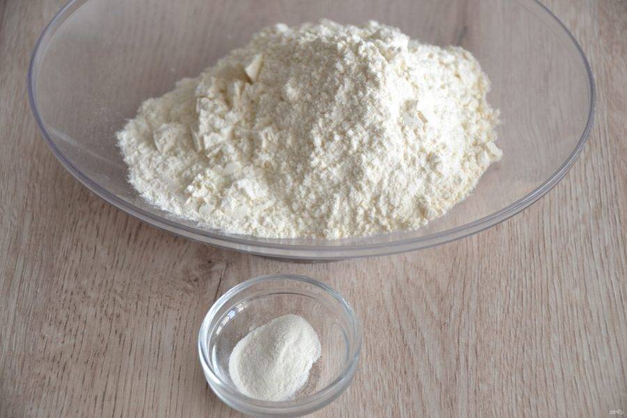 Соедините муку с разрыхлителем.