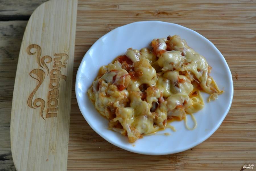 Блюдо готово. Выложите его на тарелки и немедленно подавайте, пока сыр не застыл. Приятного аппетита!