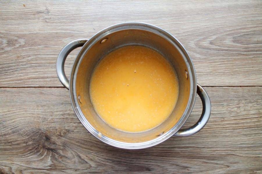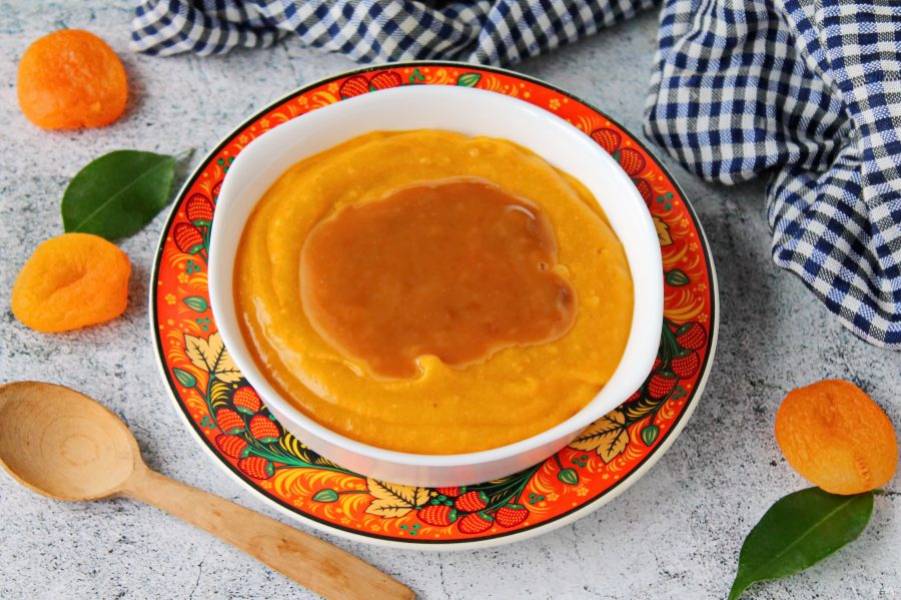 Поставьте кастрюлю на медленный огонь и варите, перемешивая в течение 10 минут, снимите с огня. Абрикосовое пюре должно загустеть.