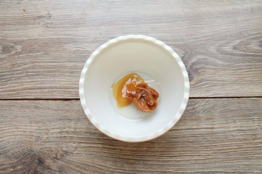 В миске смешайте урбеч, растительное масло и мед до однородности. Выложите кашу из абрикосов в тарелку, добавьте урбич и подавайте к столу.