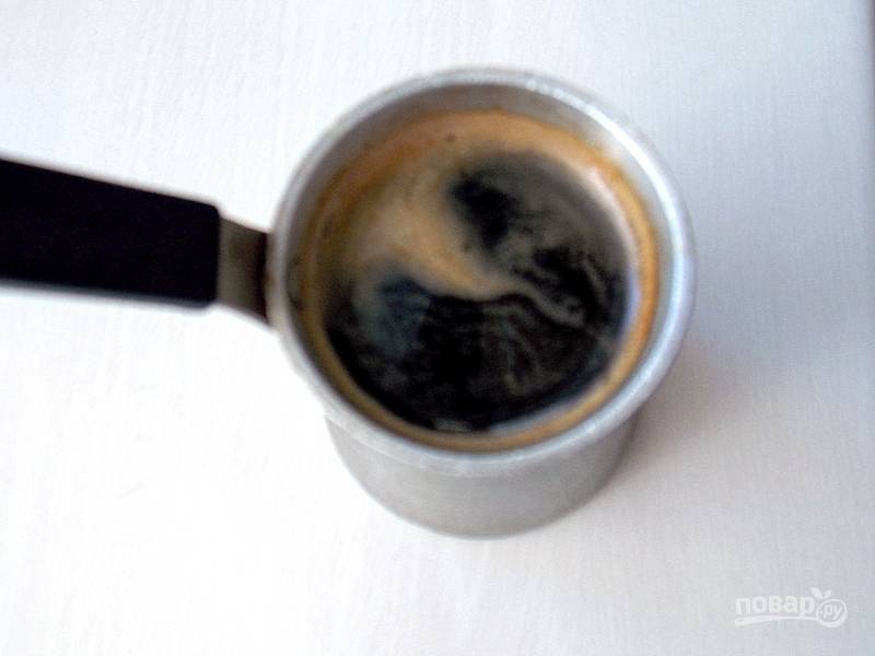 Добавьте сироп, кофе, снова взбейте, разлейте и подавайте.