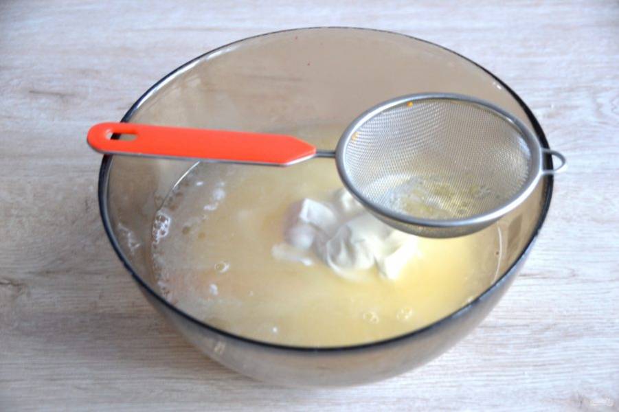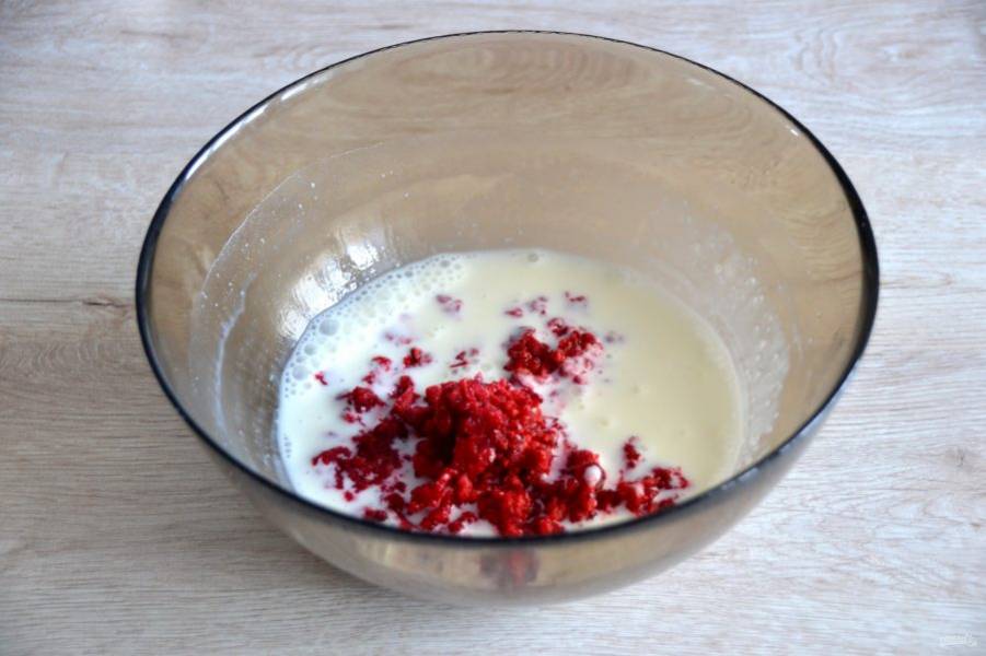 Добавьте измельченные ягоды в сметанно-желатиновую смесь.