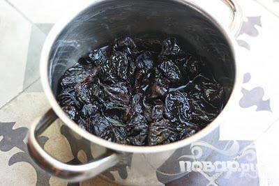 1. Разогреть на медленном огне бренди, но до кипения не доводить. Убрать с огня и поместить в него чернослив. Оставить размокать на ночь (8-10 часов).