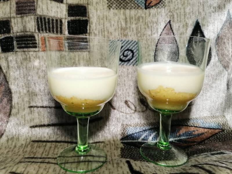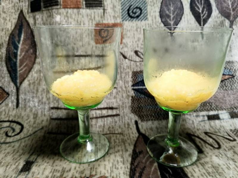 Немного остывшую поленту "Bravolli" (половину поленты) выкладываем в стакан первым слоем.