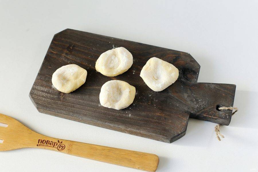 Каждый кусочек обваляйте в муке с двух сторон приминая руками.