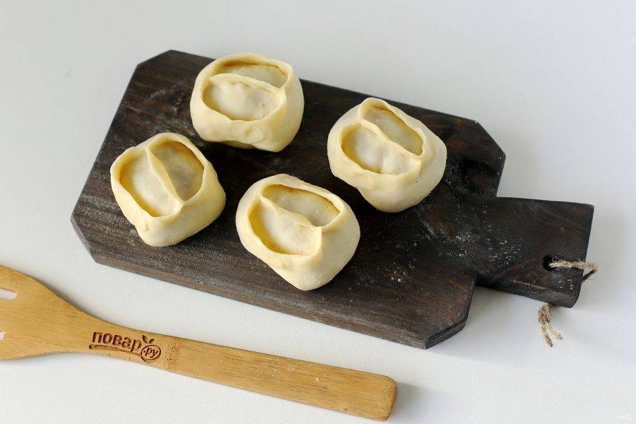 Таким образом сформируйте все манты и выложите их на смазанную маслом решетку пароварки или мантоварки. Готовьте на пару после закипания около 40 минут.
