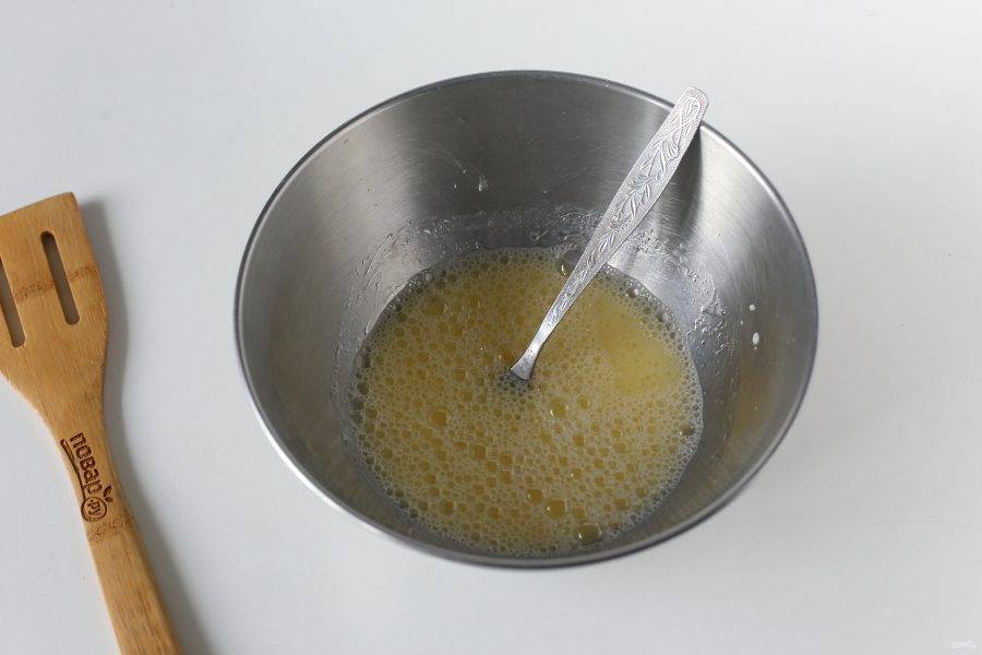 В глубокой миске смешайте воду, яйцо, растительное масло и 0,5 ч.л. соли.