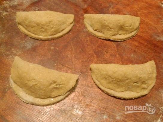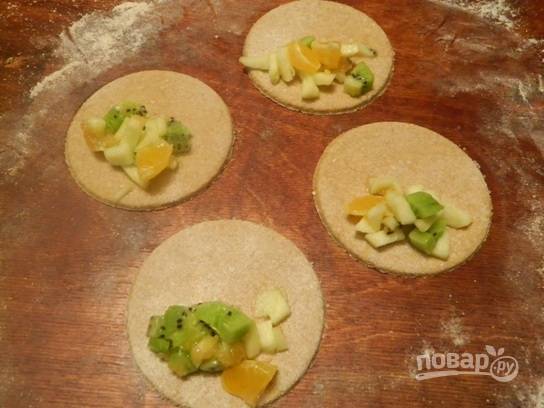 Накрываем второй половинкой и защипываем края очень тщательно, чтобы сок из фруктов не вытекал.