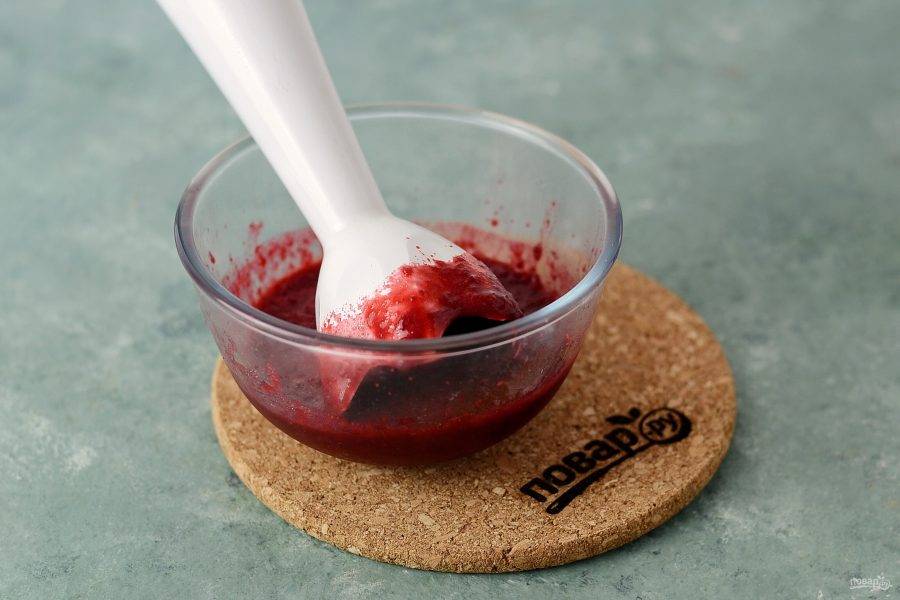 Измельчите блендером вишню с пектином и сахарозаменителем до состояния однородного пюре.