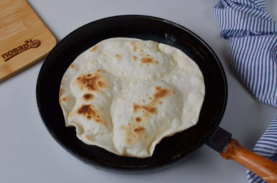 Через пару секунд лаваш начнет покрываться пузырями и зарумяниваться с нижней стороны.