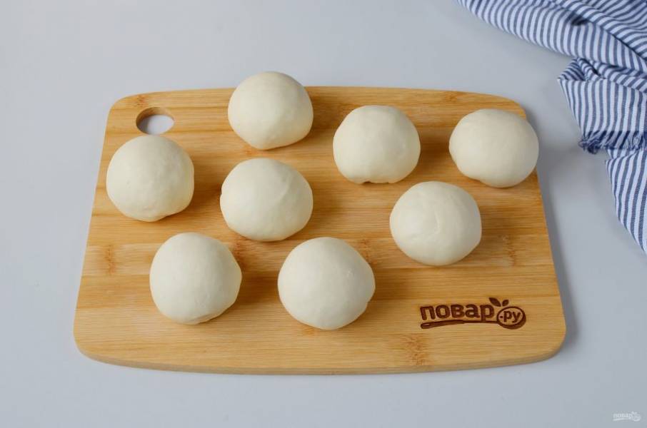 Через 30 минут тесто стало пластичным и гладким. Разделите его на 8 частей. Скатайте в шарики, чтобы потом удобно было раскатывать круглые лаваши.