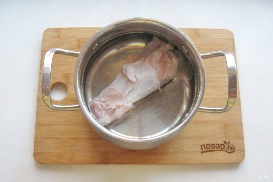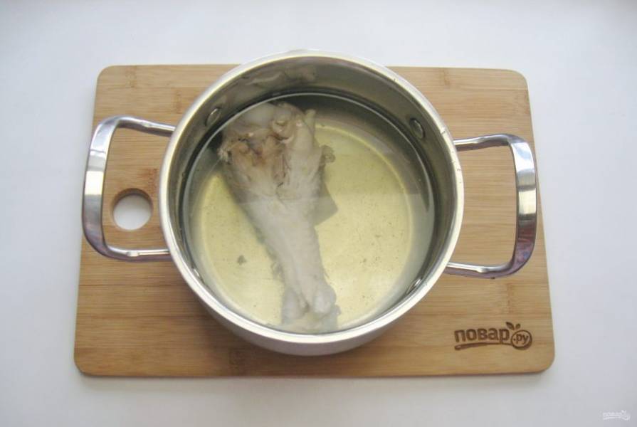 Любую часть индейки (у меня крыло) помойте и выложите в кастрюлю. Залейте водой.