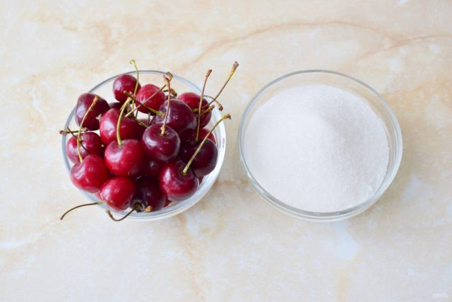 Для приготовления джема подготовьте необходимые ингредиенты. Ягоды черешни выбирайте спелые, сочные и без повреждений.