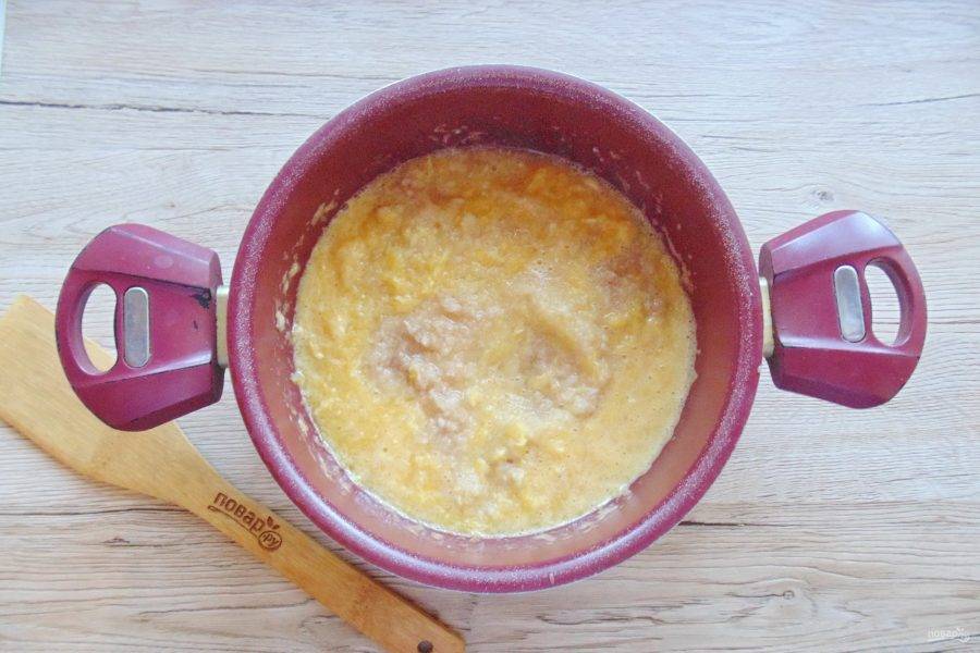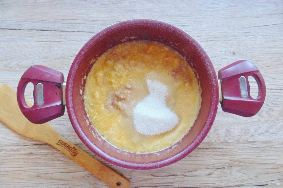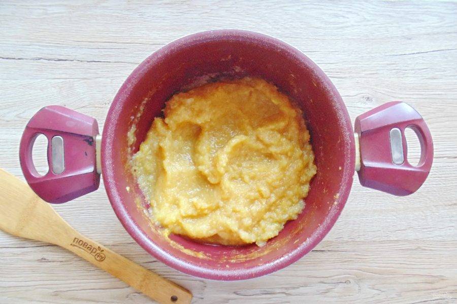 Переложите измельчённые груши и апельсин в кастрюлю с толстым дном или в таз.