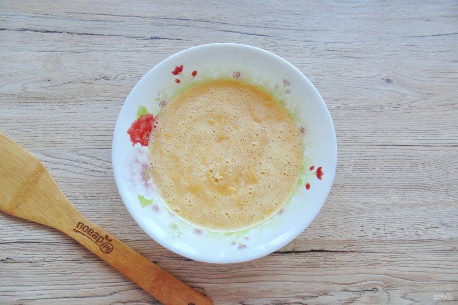 Апельсин вымойте, очистите, максимально удалите белые прожилки. Нарежьте произвольными кусочкам. Если есть, удалите косточки. Переложите в глубокую миску.