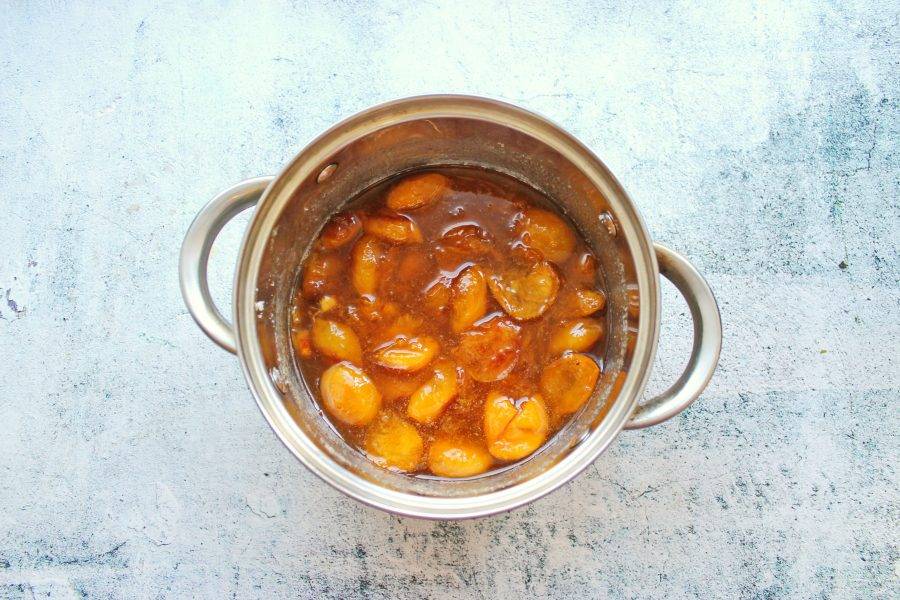 Верните кастрюлю с джемом на огонь и варите еще в течение 20-30 минут, до желаемой густоты.