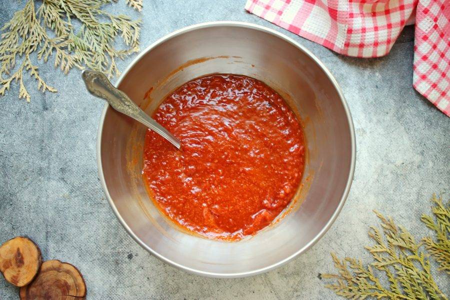 Рябину выложите в миску, пробейте погружным блендером до однородной массы. При желании массу можно протереть через среднее сито.