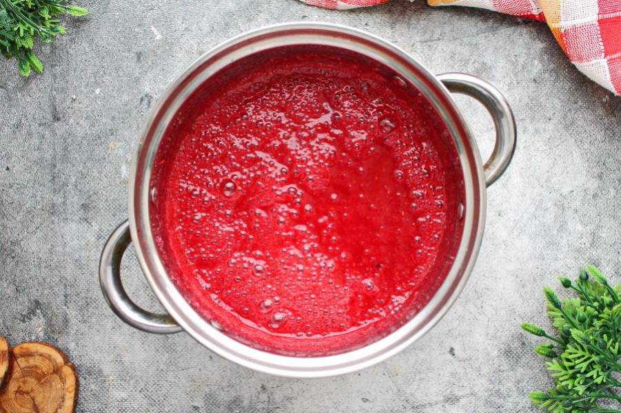 Кастрюлю со смородиной поставьте на средний огонь и доведите до кипения и варите в течение 5 минут. Убавьте огонь и варите еще в течение 10 минут.