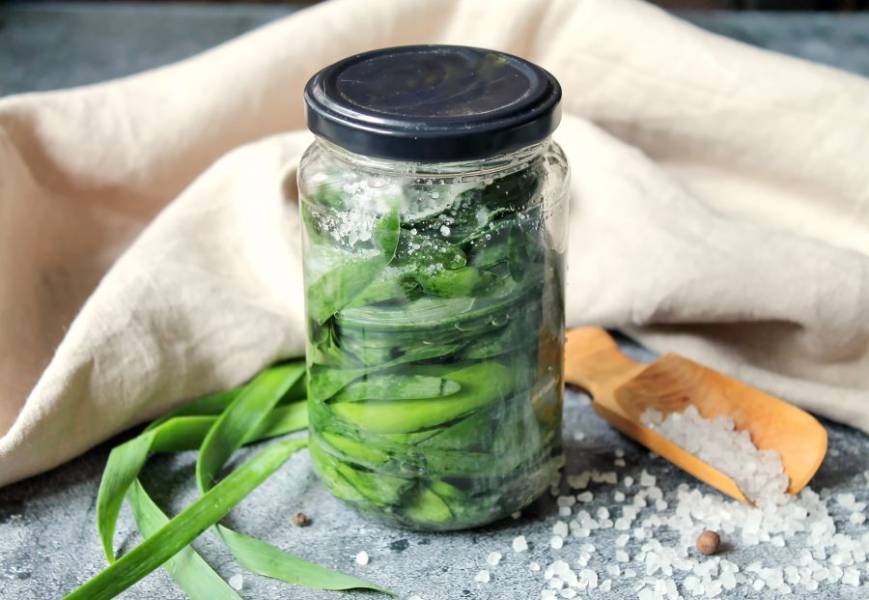 Плотно выложите джусай в чистую, стерилизованную банку вместе с солью и соком. Банку плотно закройте и уберите на хранение в холодильник.