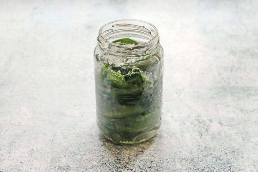 Небольшие пучки сверните в клубки, начиная с основания. На дно посуды насыпьте соль и выложите плотно клубки джусая, пересыпая солью.