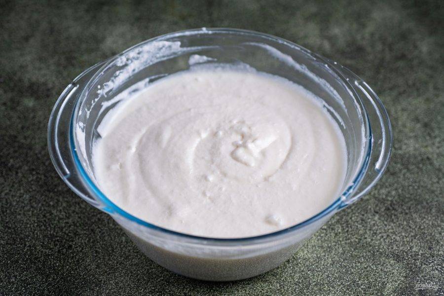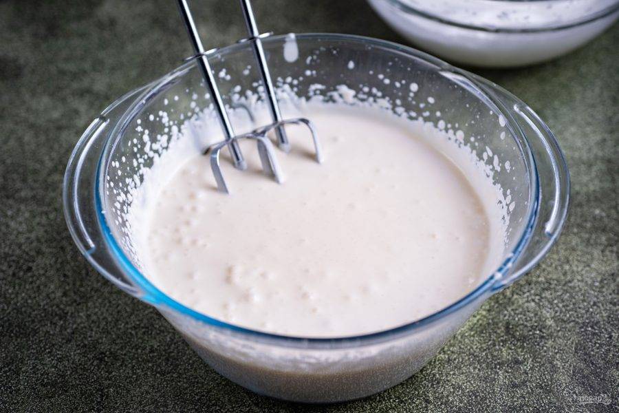 В просторную миску залейте охлажденные сливки и миксером их взбейте до кремообразного состояния, то есть до мягких пиков.