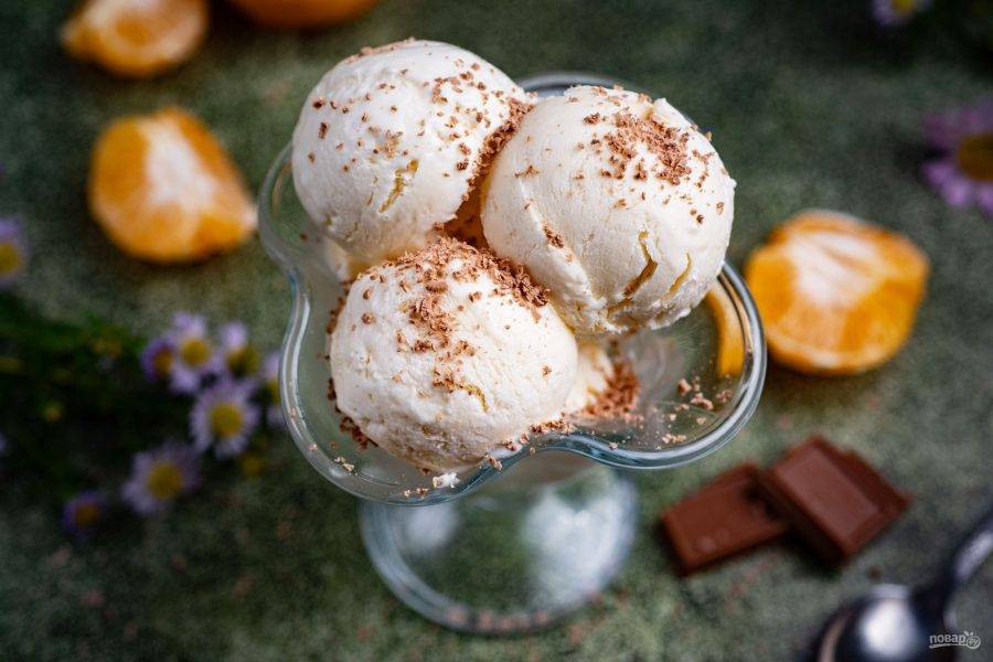 Затем можно приступать к дегустации готового мороженого. Подавайте шарики вкуснейшего мороженого в красивых креманках, посыпав тертым шоколадом.