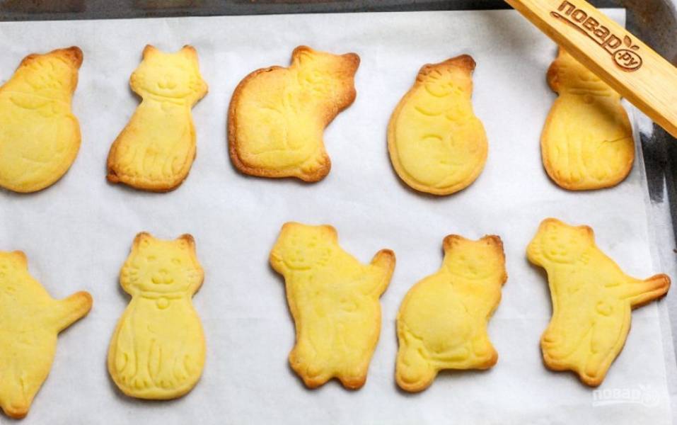 Разогрейте духовку до 180 градусов и застелите противень пергаментной бумагой. Выложите фигурки на бумагу и отправьте в духовку на средний уровень.
