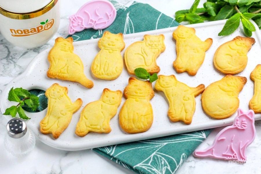 Выложите румяное и вкусное домашнее печенье на тарелку или досочку и подайте к столу охлажденным — оно будет более ломким. Приятного вам аппетита!