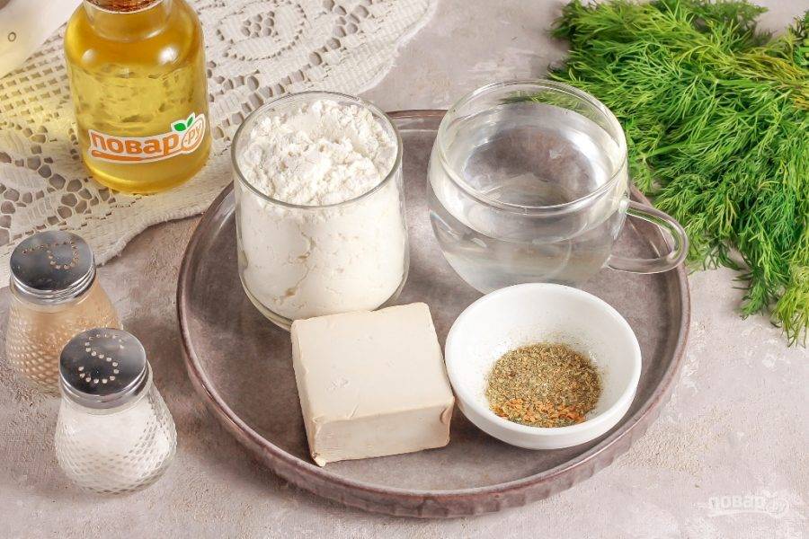 Подготовьте указанные ингредиенты. Можно использовать свежие дрожжи или сухие. Сухих понадобится чуть меньше, около 1/2 ч.л.