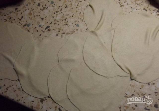 4. Каждый очень тонко раскатайте. Лучше всего раскатать сразу все, так как жарится лаваш очень быстро. Подготовьте также чистое кухонное полотенце.