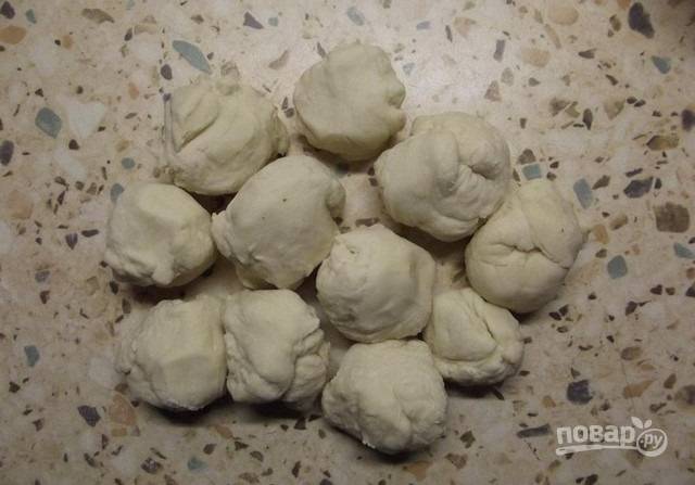 3. Когда тесто "отдохнуло", разделите его на 10-12 одинаковых кусочков.