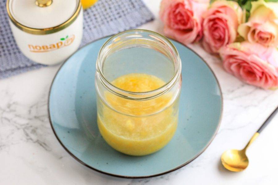Затем переместите лимонную массу в банку или стеклянный контейнер с крышкой.