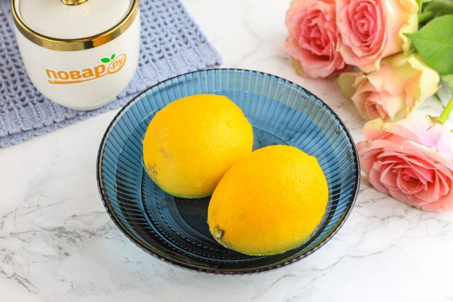 Выложите лимоны в глубокую емкость, вскипятите воду в чайнике и полейте кипятком фрукты, чтобы он пропарил их со всех сторон. Таким образом из лимонной кожуры удаляется горечь. Можно лимоны заморозить и затем разморозить, не используя кипяток, заморозка тоже отлично удаляет горечь.