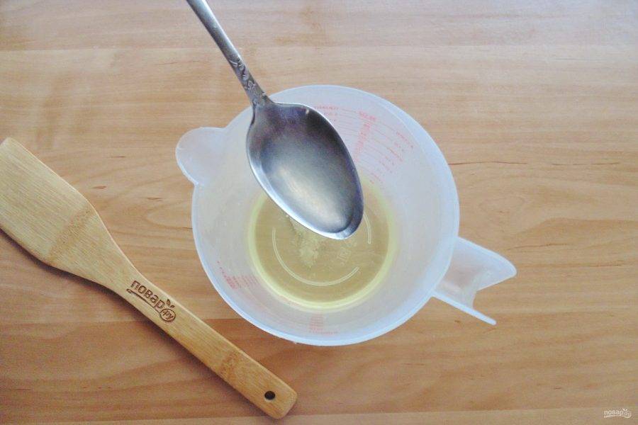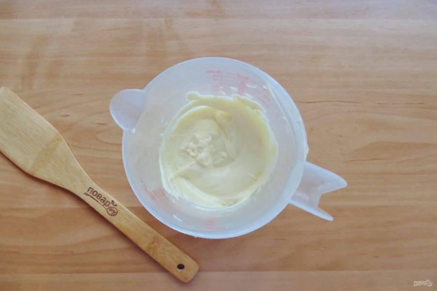 Подсолнечное рафинированное масло налейте в посуду, в которой вы будете взбивать майонез и поставьте на 20 минут в морозильную камеру.