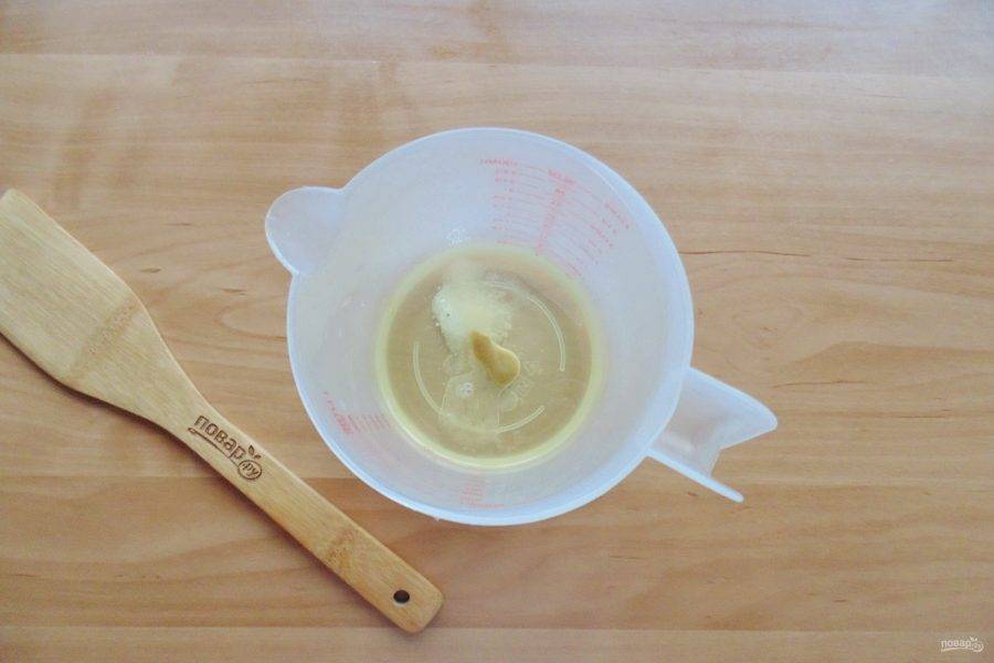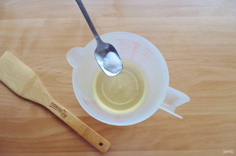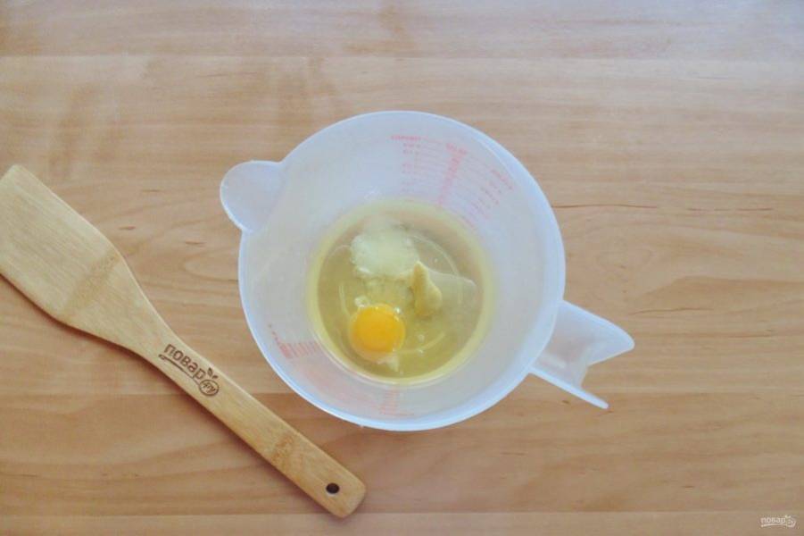Куриное яйцо хорошо помойте с мылом, высушите и разбейте в посуду с маслом, солью, сахаром, лимонным соком и горчицей.