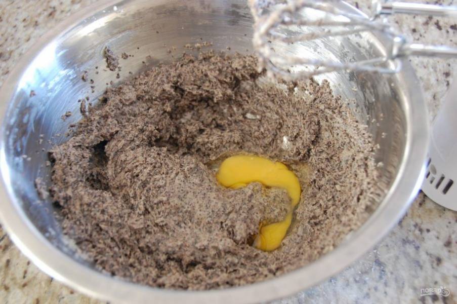 5. Вбейте в смесь масла 3 яйца, по 1 за раз, после каждого яйца перемешивайте до однородности.