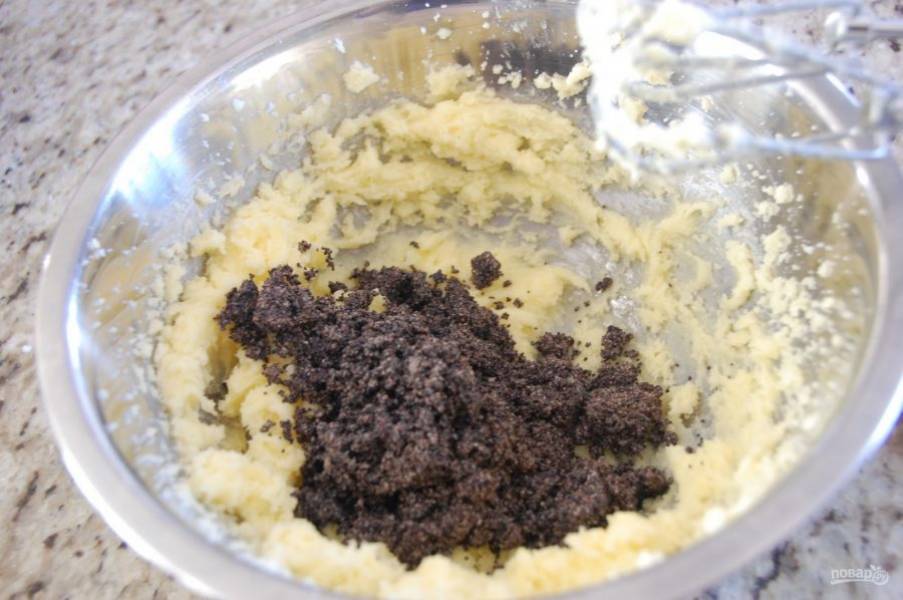 4. Добавьте охлажденную смесь мака в смесь масла и сахара, добавьте ванильный и миндальный экстракты.