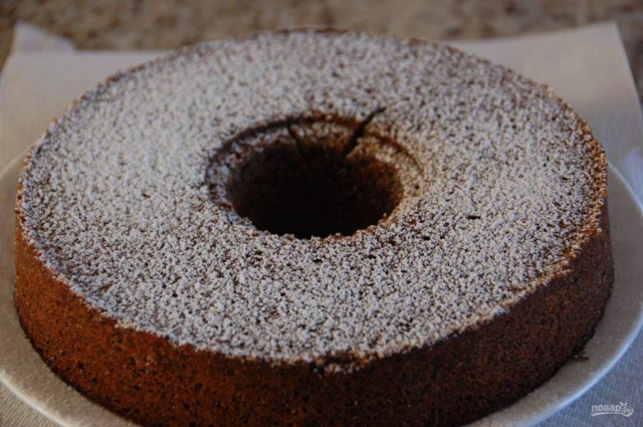 9. Переложите пирог на тарелку, посыпьте сахарной пудрой и подавайте к столу.