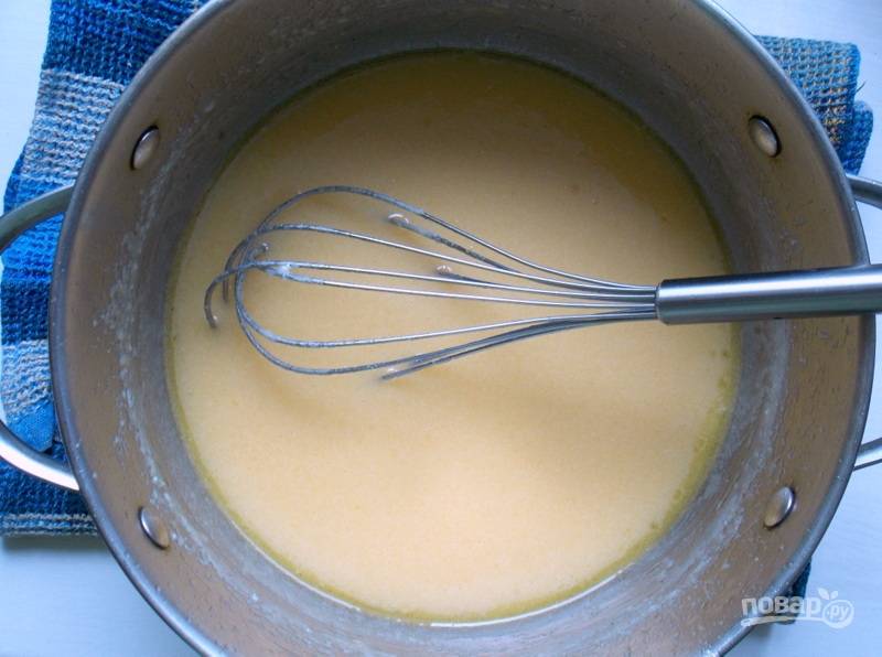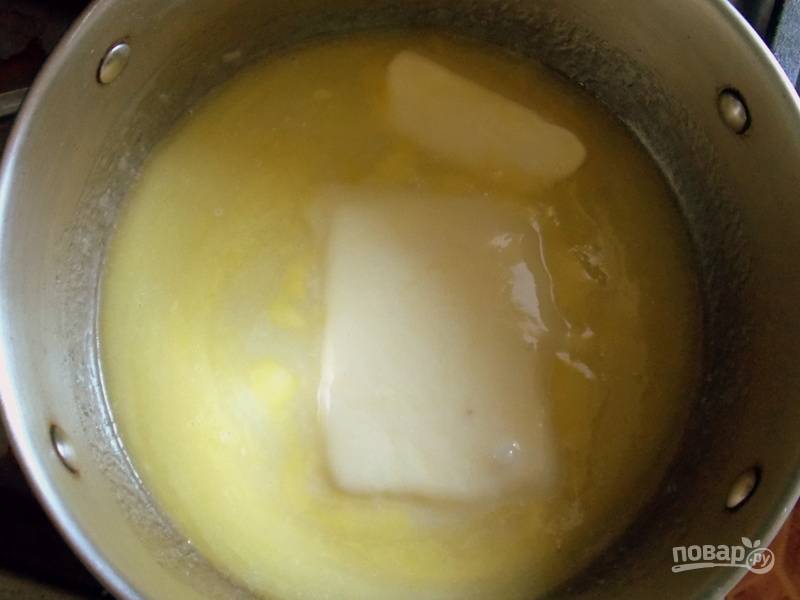 Форму необходимо смазать маслом, выложите туда массу. Разровняйте и дайте остыть.