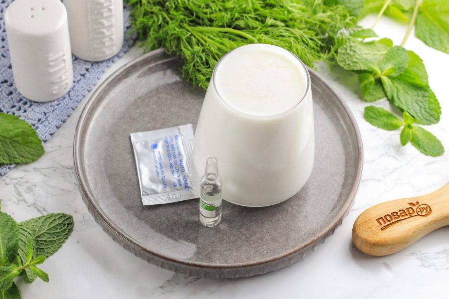 Подготовьте указанные ингредиенты. Молоко используйте жирное, лучше всего — домашнее (фермерское). Если используете магазинное 3,2% жирности, то обязательно добавляйте хлористый кальций, его можно купить в любой аптеке.