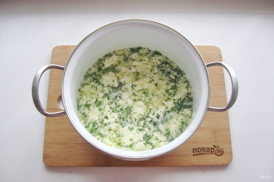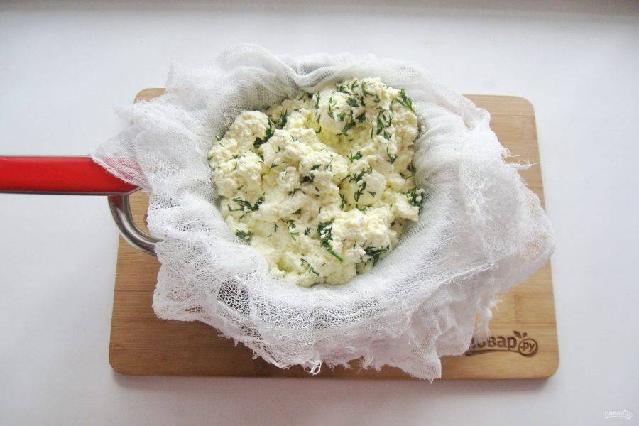 Аккуратно перемешайте укроп с сыром и сывороткой. Дайте постоять 30 минут.