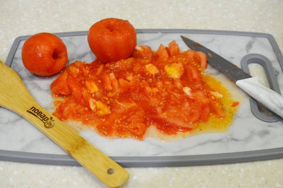 3. Снимите кожу с помидоров и нарежьте.