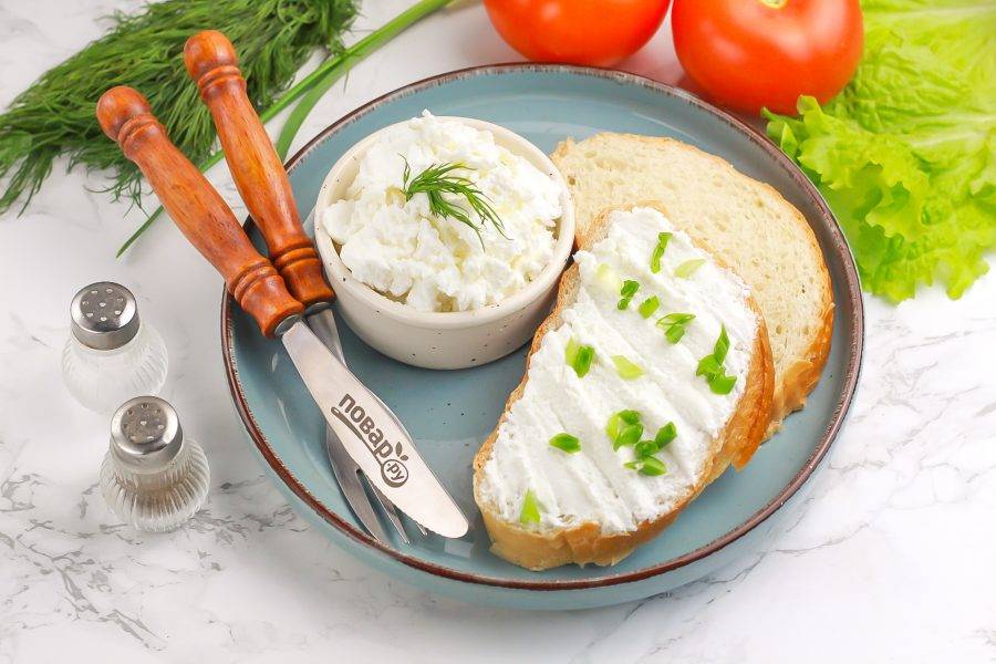 Аккуратно выложите творожную массу в пиалу или креманку и подайте к столу с зеленью, дипами, паштетом или свежими овощами. Приятного вам аппетита!