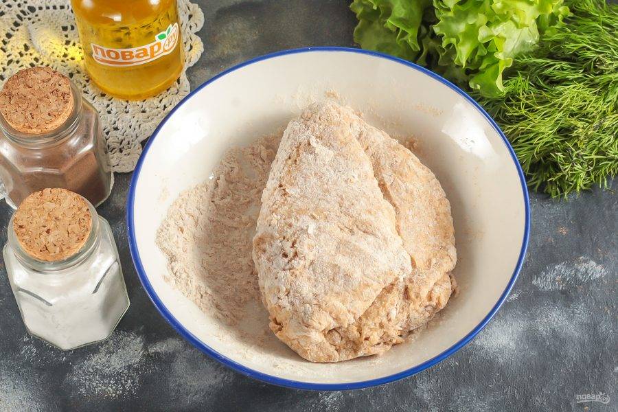 Примерно через 10-12 минут замешивания тесто станет плотным, сбитым и приятным на ощупь. Сформируйте из него колобок и поместите его в пакет или обверните пищевой пленкой. Оставьте на 20 минут для "отдыха".