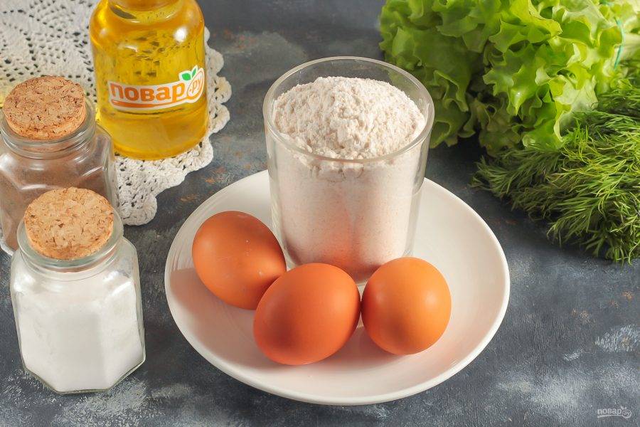 Подготовьте указанные ингредиенты. Если готовите лапшу на большую семью, то используйте 5-7 яиц.