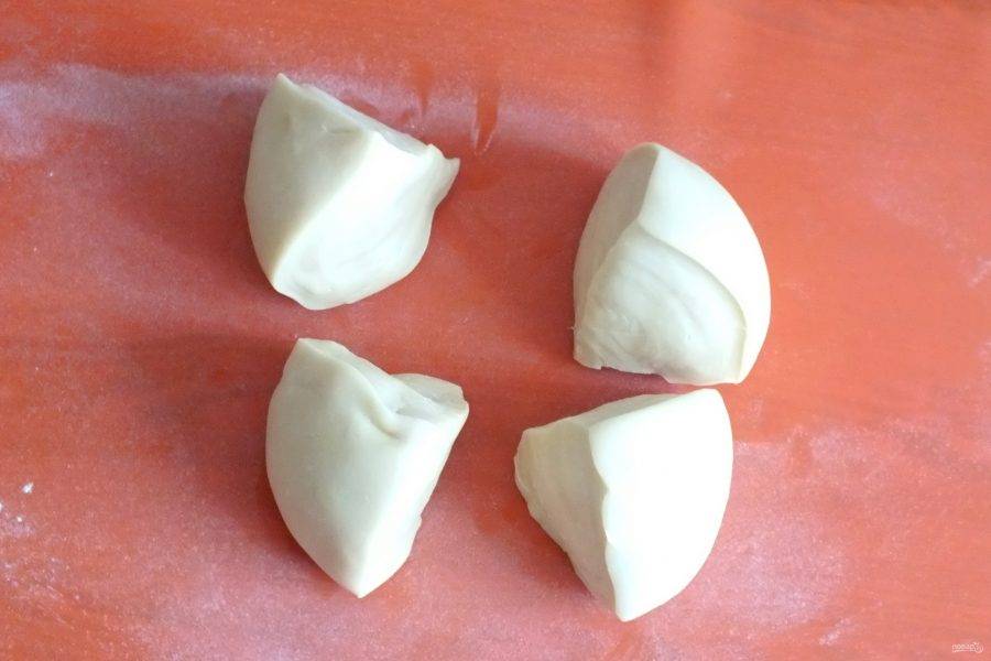 Готовое тесто разделите на 4 части.